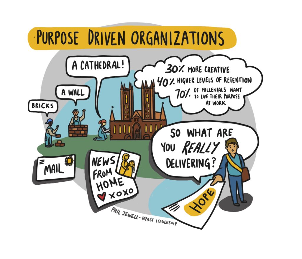 Think: Explore the bigger impact our role, task, team, or organization has – attach what we do to a bigger meaning and purpose. Feel: Engaged, motivated, and inspired to know what our real team or organizational purpose is, and proud to be part of that. Do: Understand our specific purpose and allow it to be the foundation of the culture, driving decisions and operations.